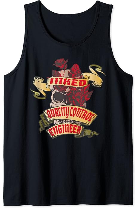 Amazon Com Quality Control Inspector Inked Skull Red Roses Tattoo Tank Top Clothing Shoes Jewelry